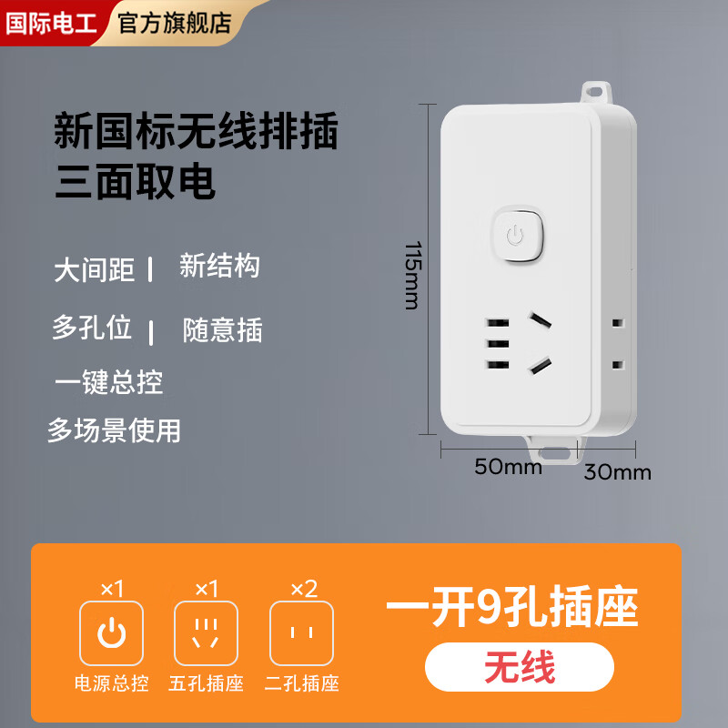 FDD国际电工无线多孔弱电箱专用排插一键总控半成品自接线插排不带线3孔插板 九孔一键总控无线排插