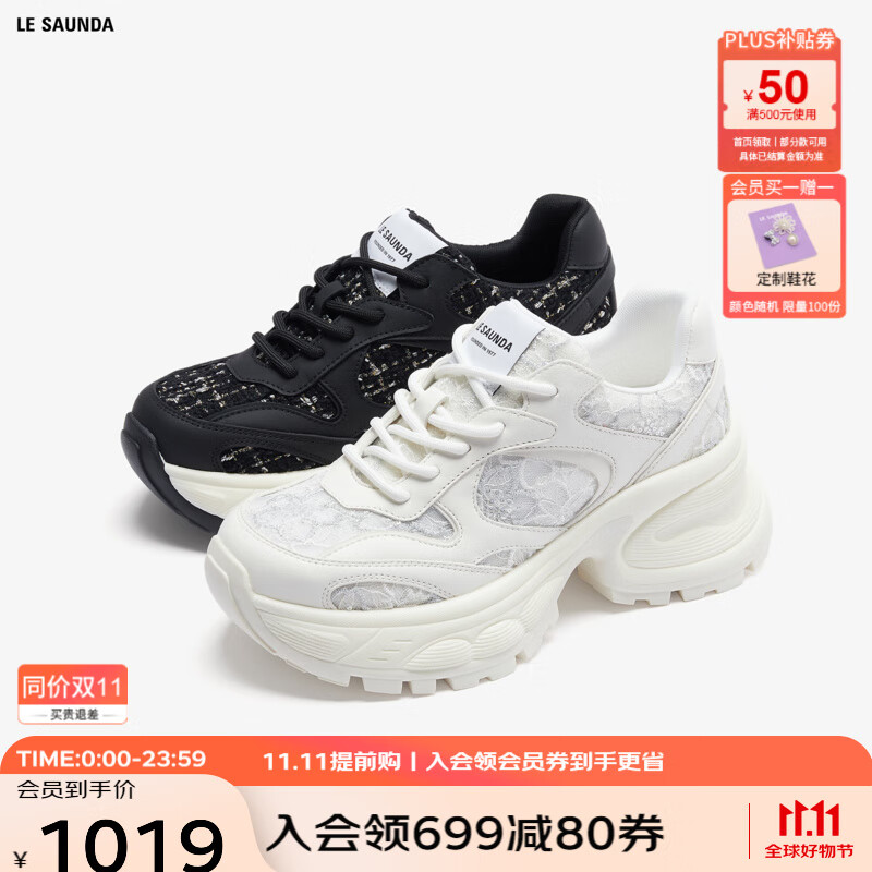 莱尔斯丹商场同款厚底老爹鞋2025秋季新款时尚增高牛皮休闲鞋女鞋62301 千金黑 BKL 38
