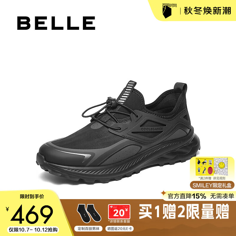百丽轻盈厚底健步鞋男2025新款秋商场同款户外休闲运动鞋8VP01CM5 黑色 42 (260mm)