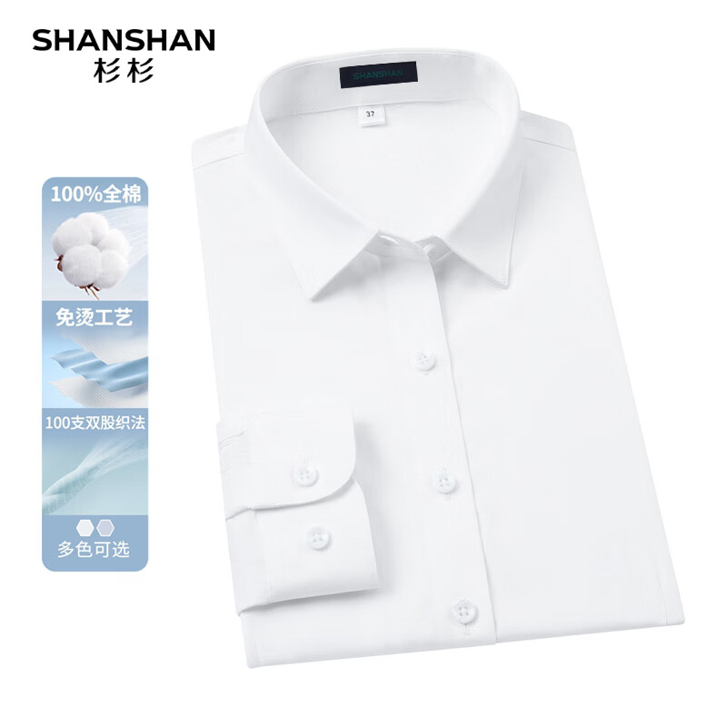 SHANSHAN杉杉长袖衬衫男【纯棉】纯色免烫舒适不闷汗日常休闲通勤上衣男 白色 38 /170/84A