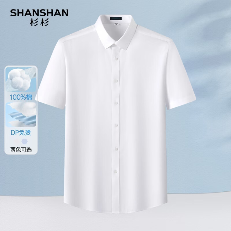 SHANSHAN杉杉免烫抗皱纯棉短袖衬衫男夏季纯色上班通勤休闲上衣 白色 38 /165/84A