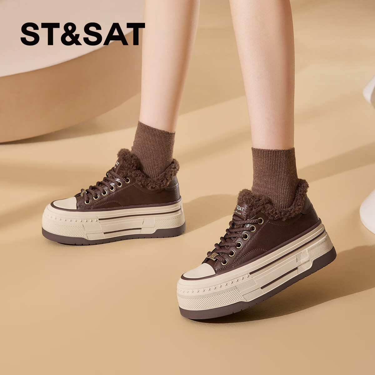 星期六加绒经典板鞋女款2025新款冬季加厚增高保暖帆布鞋复古棉鞋 咖啡色 35
