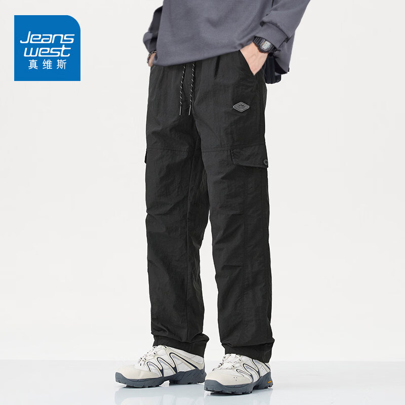 真维斯(Jeanswest)冰丝工装裤子男士2025春夏厚款美式潮牌直筒速干运动休闲裤 暗黑色常规 【春秋款】 M 【建议90-115斤】
