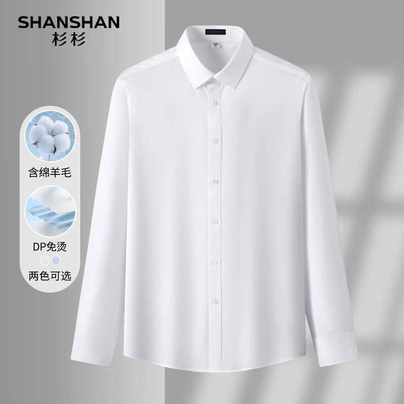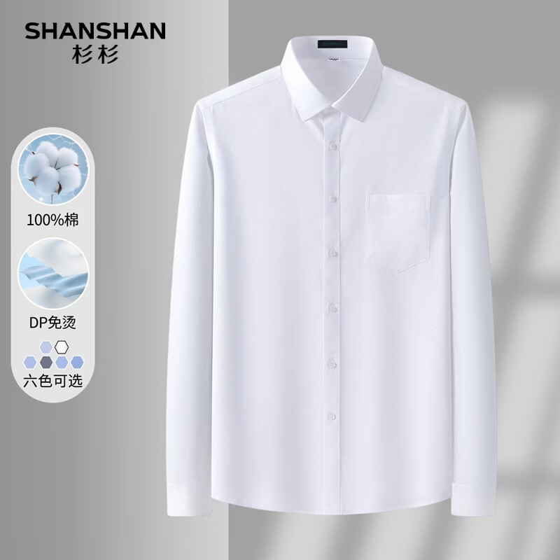SHANSHAN杉杉春季新款男士纯棉长袖衬衫免烫抗皱纯色商务休闲衬衣 白色 38 /165/84A