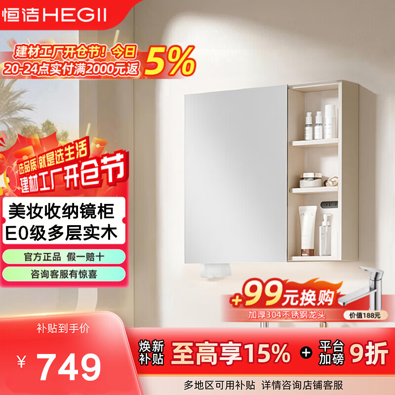 恒洁【单独镜柜不含主柜】步入感应LED半开放收纳美妆镜柜2503S 【美妆收纳镜柜不含主柜】75CM