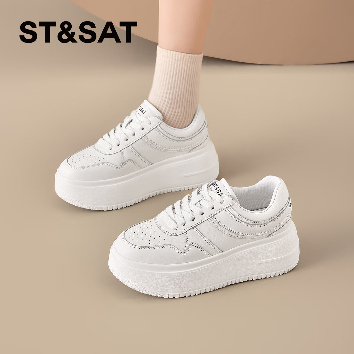 星期六百搭厚底小白鞋女2025夏季新款增高透气板鞋时尚休闲运动鞋 白色 35