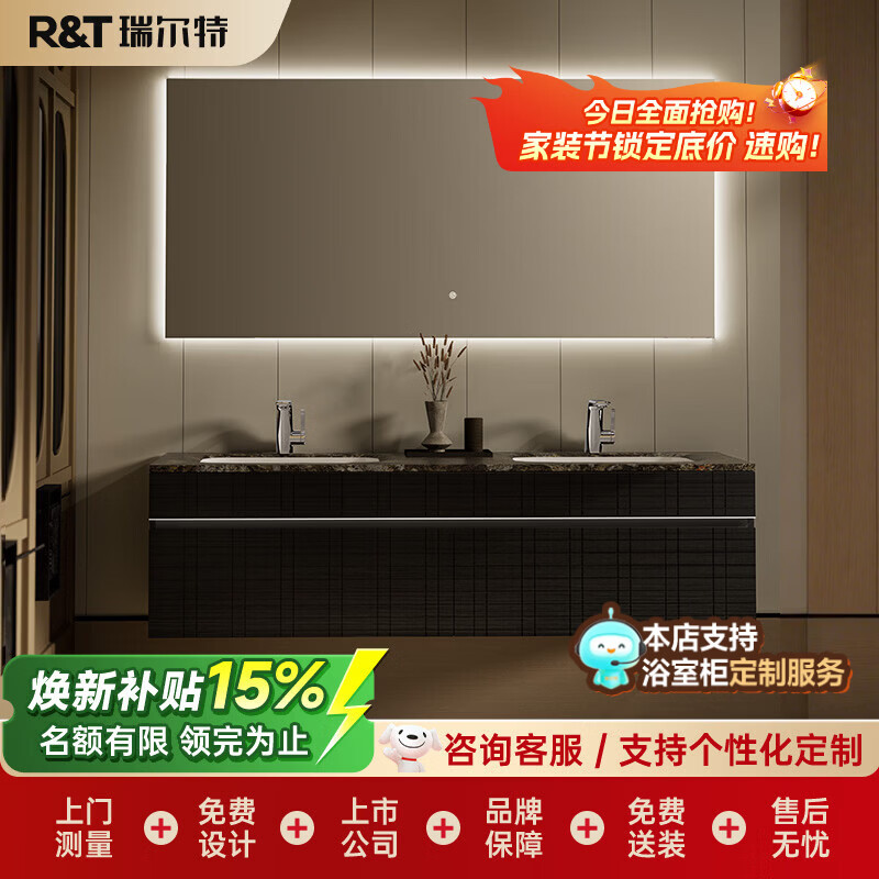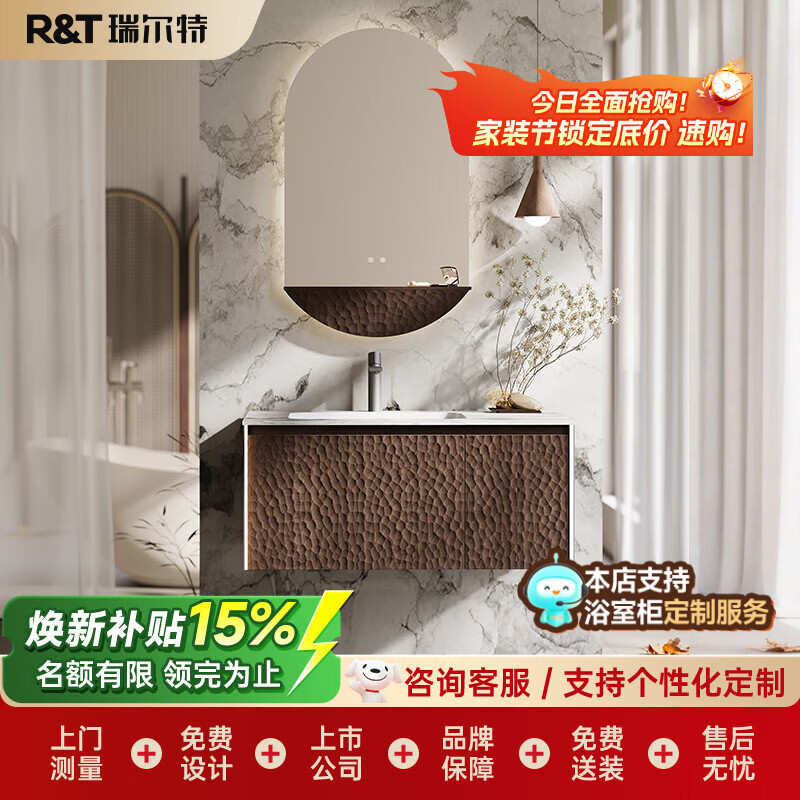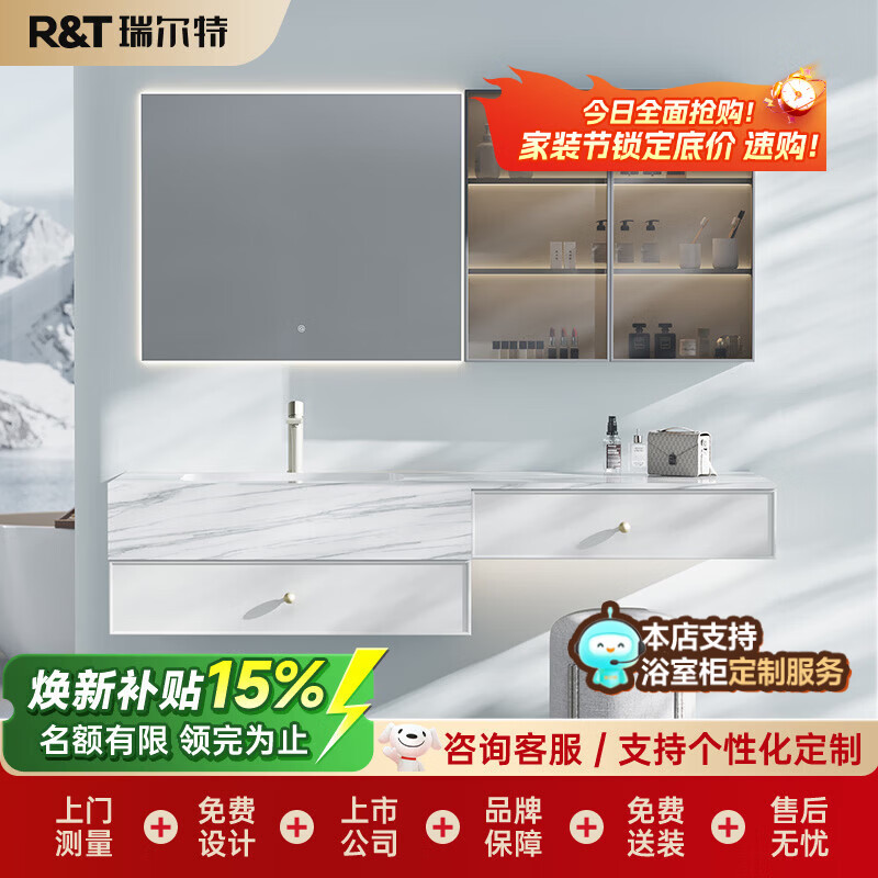瑞尔特(R&T)宋氏美学岩板无缝盆定制浴室柜组合卫生间洗漱台脸盆(联系客服) Y0085-摩登系列(拍下定金联系客服)