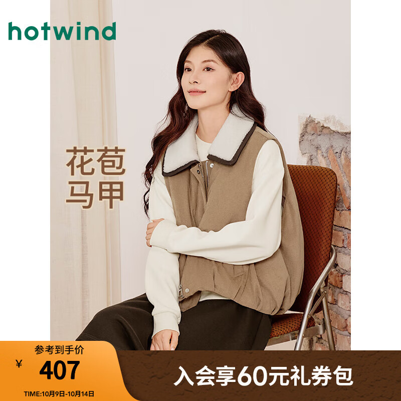 热风(Hotwind)【商场同款】女士羽绒服马甲2025年冬季新款翻领美拉德羽绒背心 08杏色 S