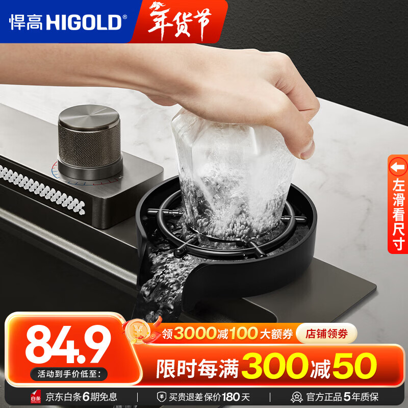 悍高(HIGOLD)厨房高压洗杯器304不锈钢水槽洗菜盆咖啡奶茶店冲洗杯子神器 [高压洗杯器]含软管+三通