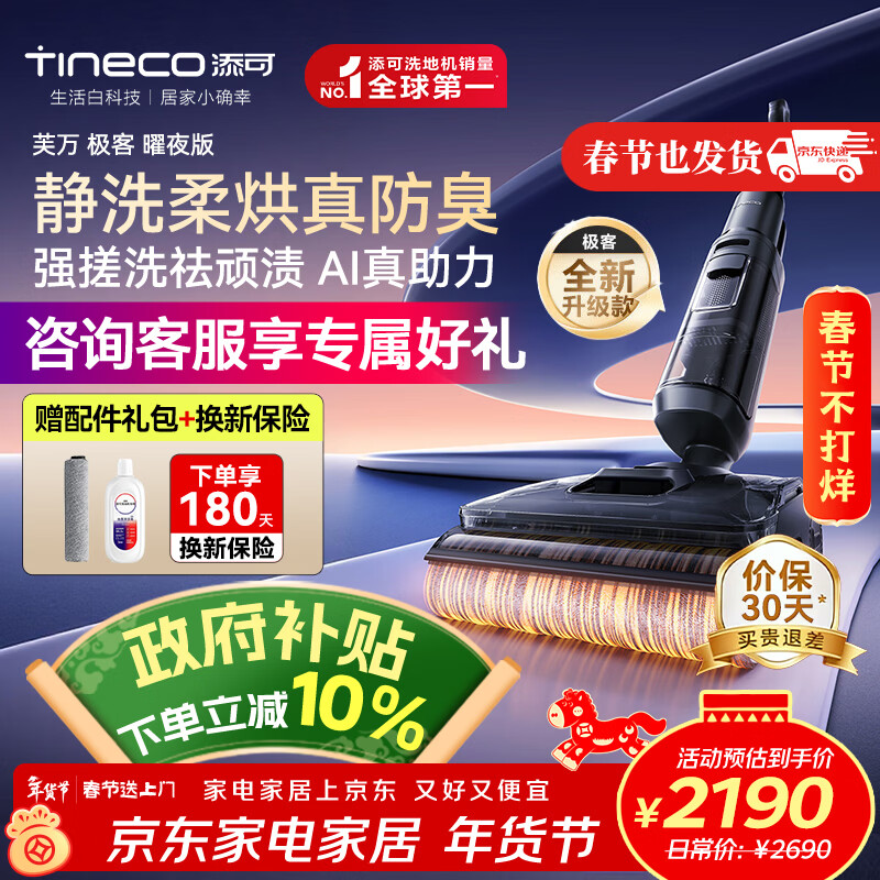 添可(TINECO)洗地机芙万极客曜夜【AI全向助力 25000PA吸力 超薄躺平】自动清洗吸拖一体宠物扫地机器人 芙万极客曜夜