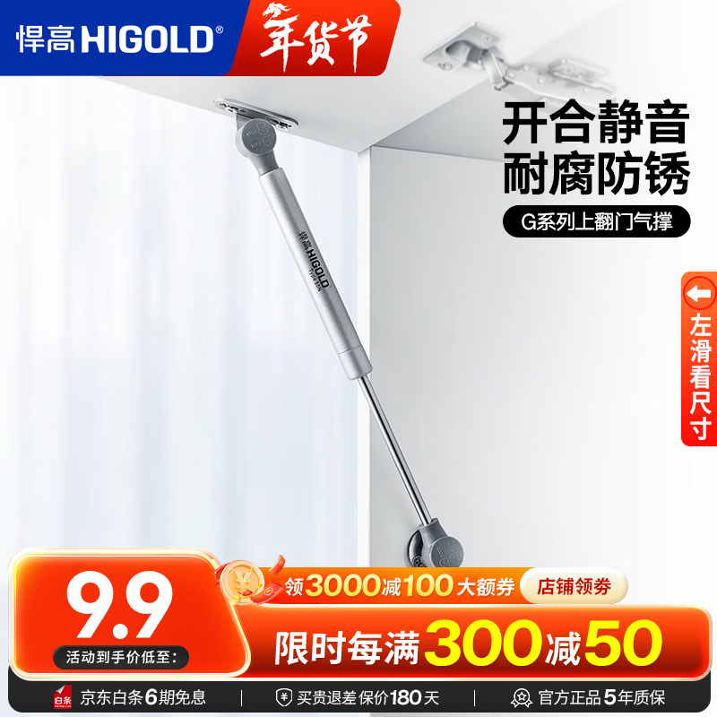 悍高(HIGOLD)橱柜门液压支撑杆气撑杆上翻门气动杆支架液压伸缩杆升降杆 【经典款】橱柜门上翻 随意任意停-银色