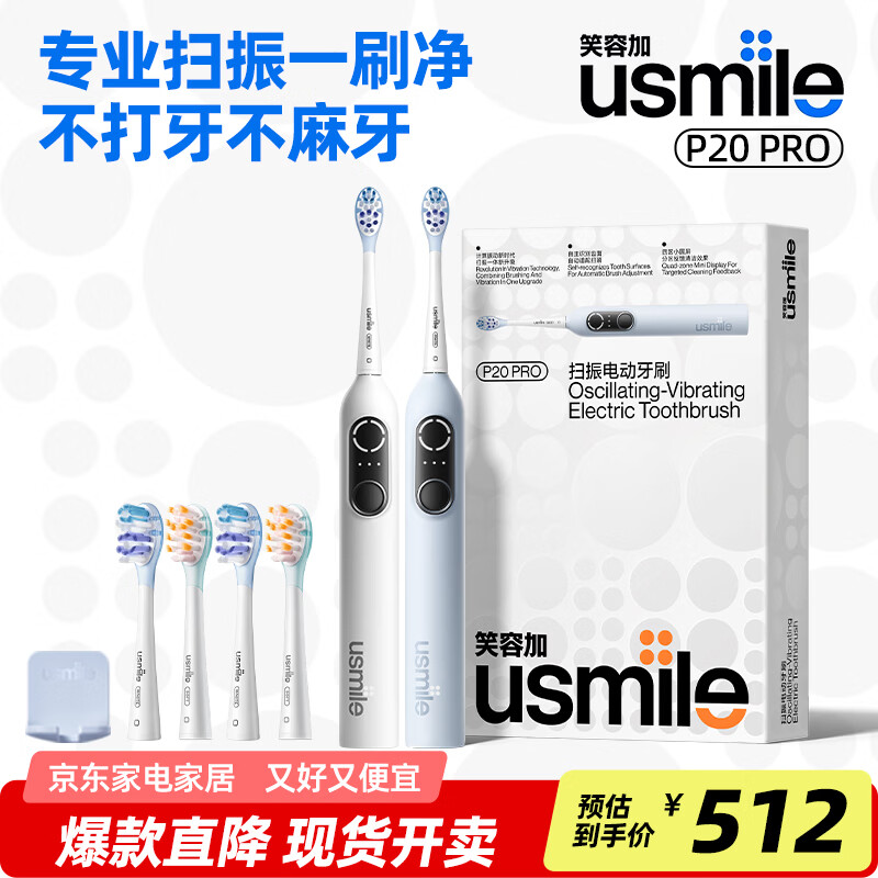 usmile笑容加电动牙刷P20PRO蓝牙APP摆幅智能扫振齿面识别护龈成人情侣送男/女朋友生日新婚520礼品礼物 【情侣双支装】P20 PRO白+蓝