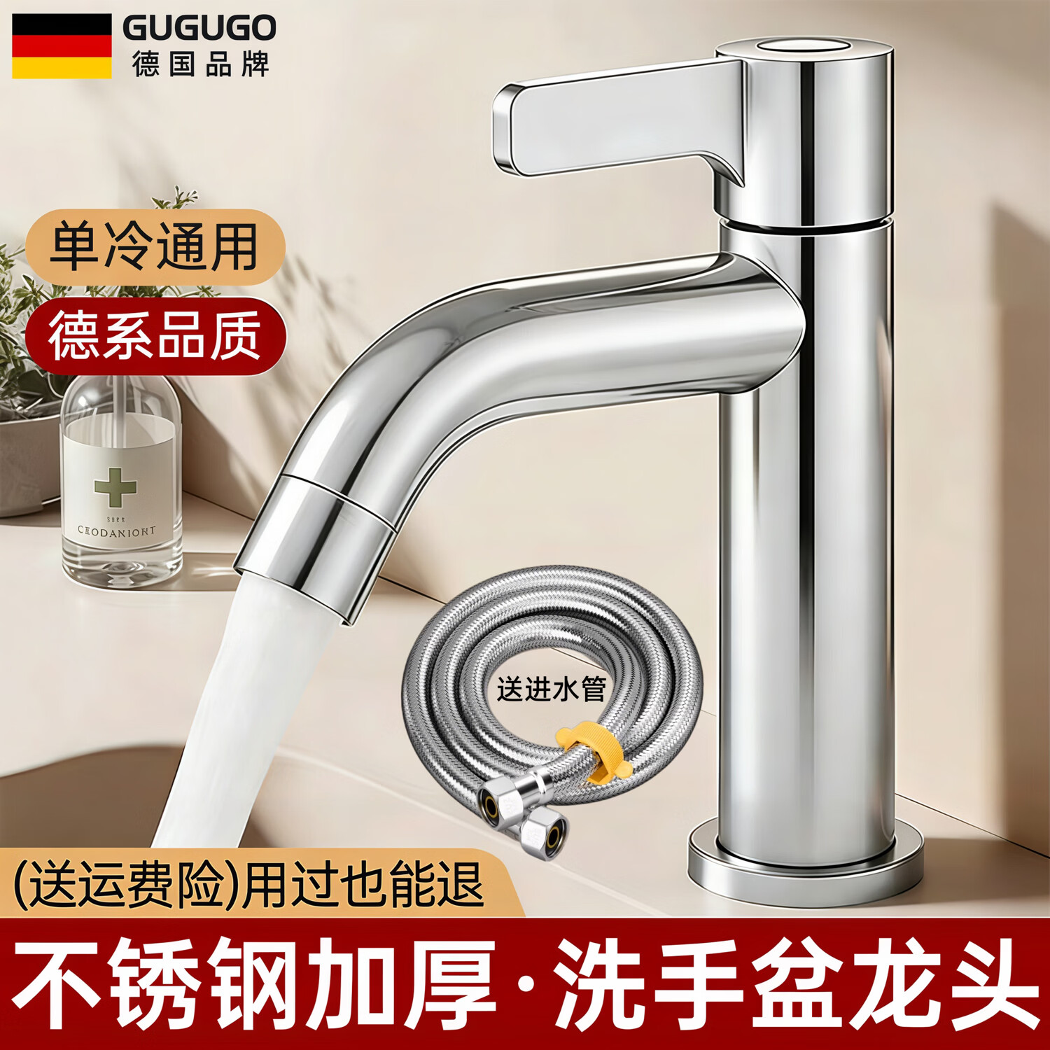 GuGuGo【德国】洗手盆水龙头单冷家用防溅面盆水龙头浴室卫生间台盆龙头 单冷【不锈钢加厚】洗脸盆水龙头 通用安装丨起泡柔和不溅水