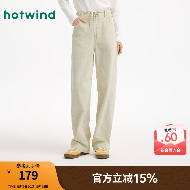 热风(Hotwind)女士休闲裤灯芯绒长裤2025年冬季新款直筒香蕉裤复古保暖长裤 03米色 M
