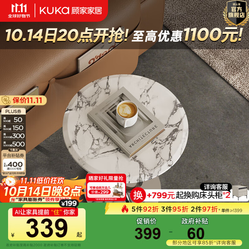 顾家家居(KUKA)现代简约客厅茶几配套组合大理石微晶石茶几角几客厅家用新品7216 角几