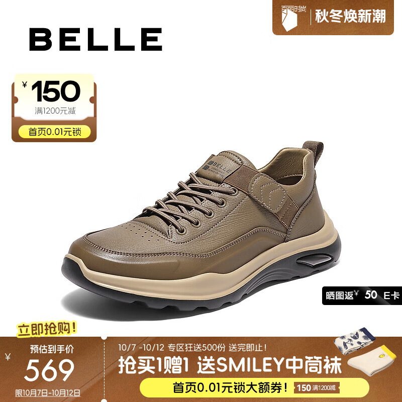 百丽(Belle)男鞋套脚休闲鞋2025冬季新款商场同款厚底增高工装鞋加绒8WR01DM5 卡其色-单里 41 (255mm)
