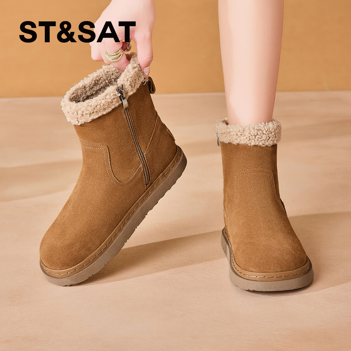 星期六(St&Sat)气质百搭时装靴女2025新款时尚英伦风短筒优雅女靴 棕色 37