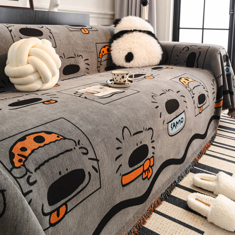无印良品ins风沙发盖布2025新款四季通用沙发巾一整张全盖沙发套罩坐垫毯 狗狗乐园-云烟灰 180*130cm 【适合小单人位】