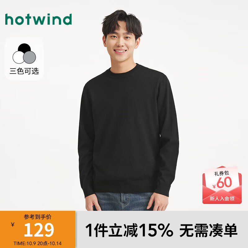 热风男士打底衫上衣2025年冬季新款基础圆领针织衫百搭内搭上衣 01黑色 S