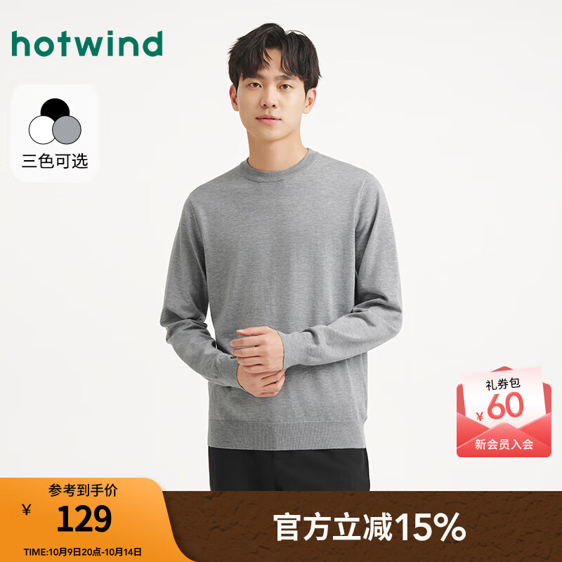 热风男士打底衫上衣2025年冬季新款基础圆领针织衫百搭内搭上衣 09灰色 S