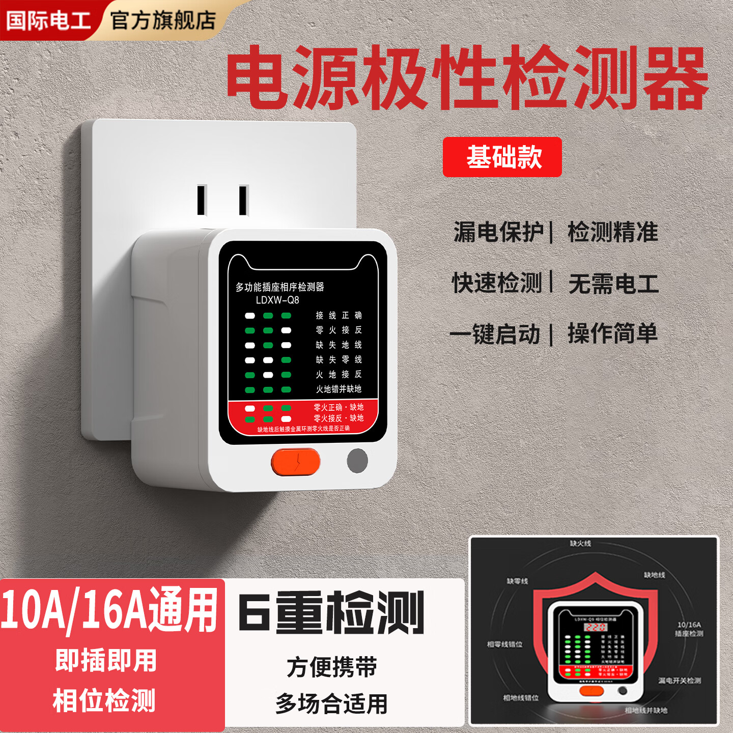 FDD国际电工工地智能数显漏电相位检测仪10A/16A通用多功能线路电源性验电器 基础款-相位检测仪