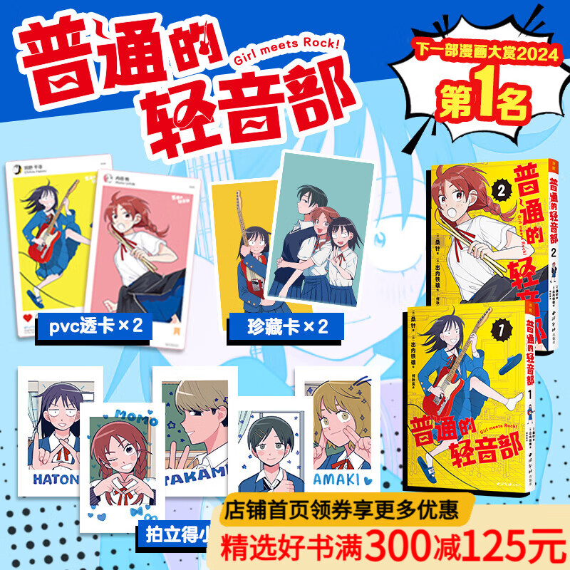 普通的轻音部 套装2册 桑针(随书附赠超大透卡+星光膜珍藏卡+首刷限定拍立得书签,集英社2024年黑马,再掀轻音部热潮)集英社少女乐队新作 日本人气动漫 果麦 普通的轻音部(1-2册)