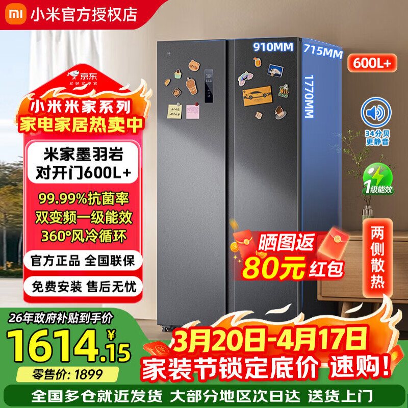 米家小米冰箱对开门610L大容量节能省电风冷无霜一级能效BCD-610WKMP米家冰箱对开门610【升级款】 610L对开门 新款