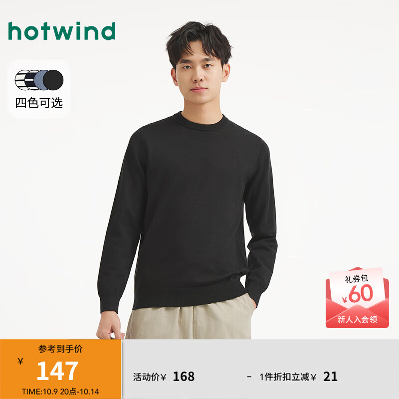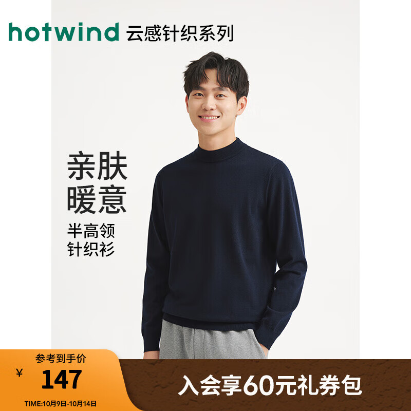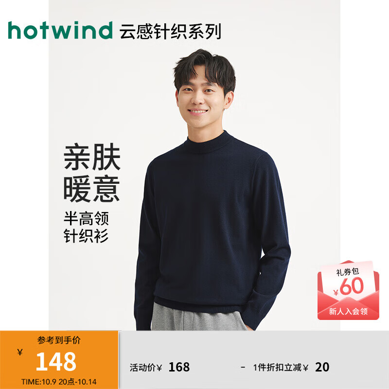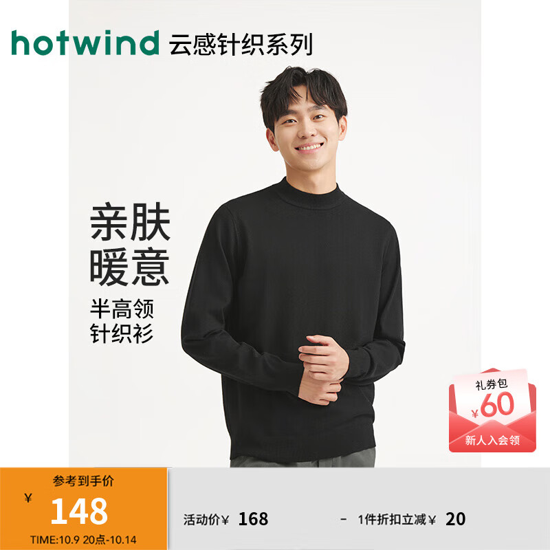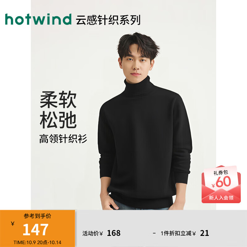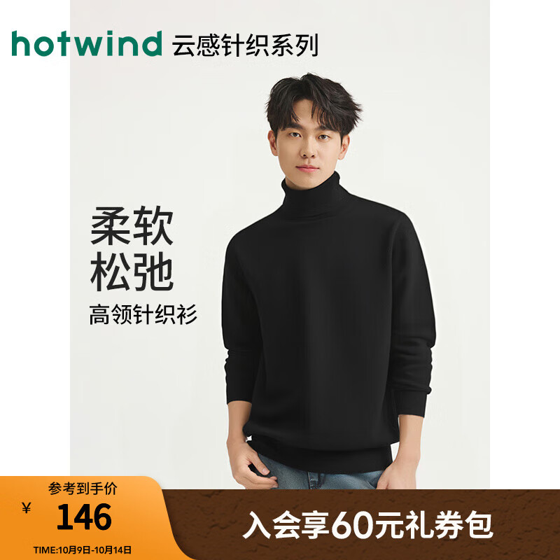热风(Hotwind)【商场同款】男士高领毛衣2025年冬季新款基础针织衫宽松内搭上衣 01黑色 S