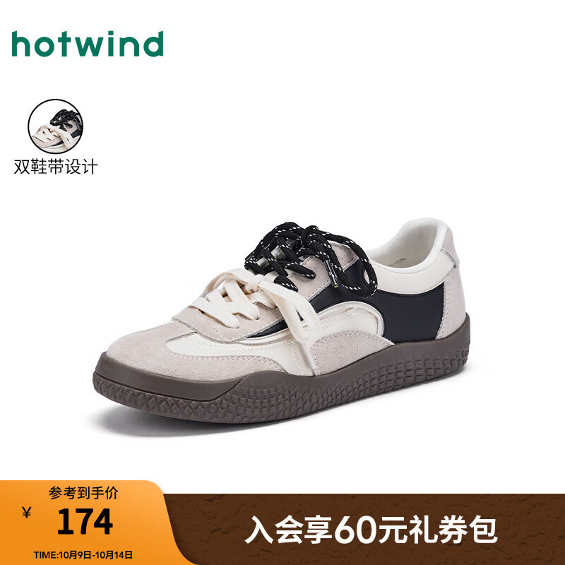 热风(Hotwind)【商场同款】薄底德训鞋2025年冬季新款复古阿甘慢跑鞋运动鞋女鞋 88米黑 37