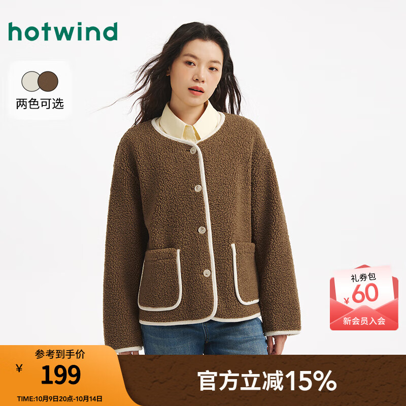 热风(Hotwind)女士毛绒夹克外套上衣2025年冬季新款小香风圆领保暖毛绒外套 02棕色 S