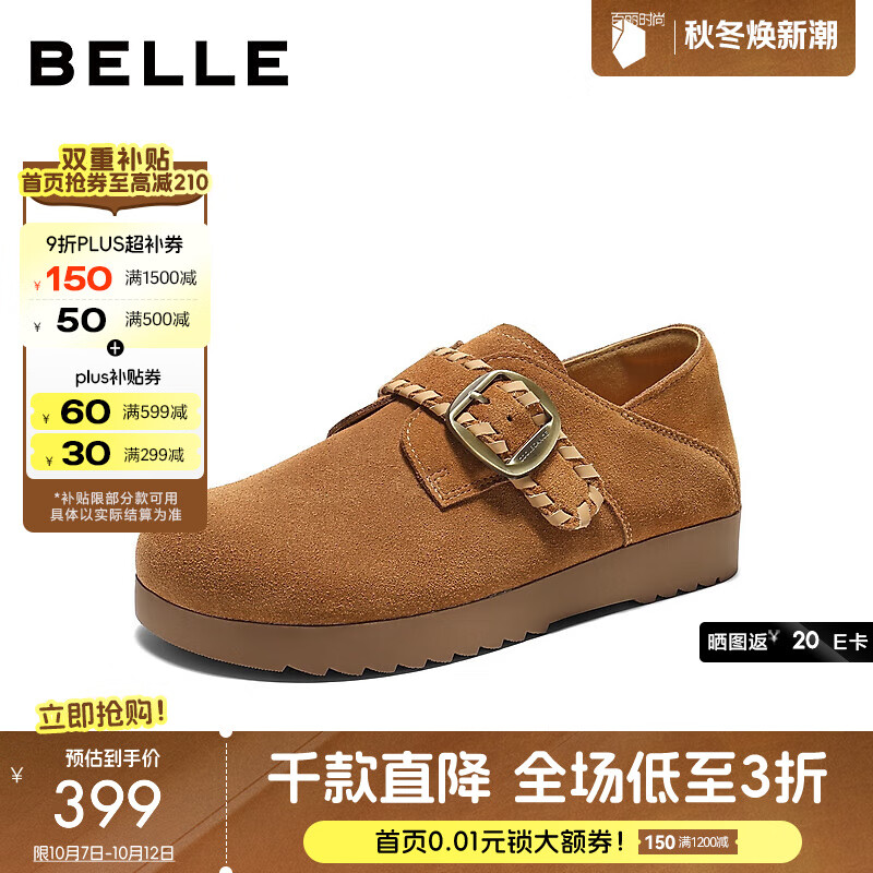 百丽(Belle)简约复古勃肯鞋女2025秋新舒适薄底可两穿休闲鞋B2900CM5 棕色 36