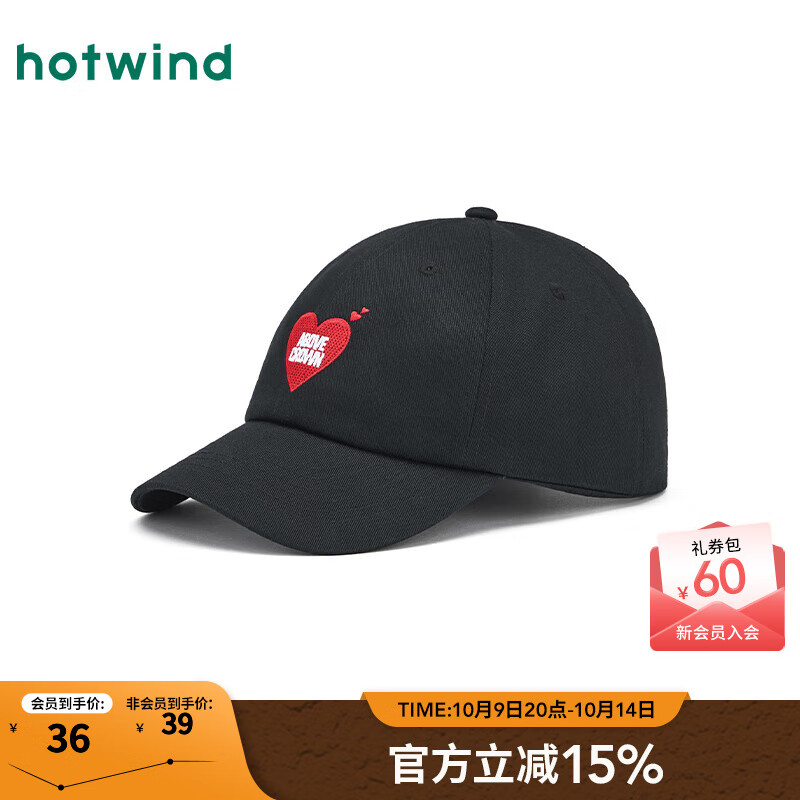 热风棒球帽2025年秋季新款爱心刺绣棒球帽圆顶显脸小百搭鸭舌帽 01黑色 均码