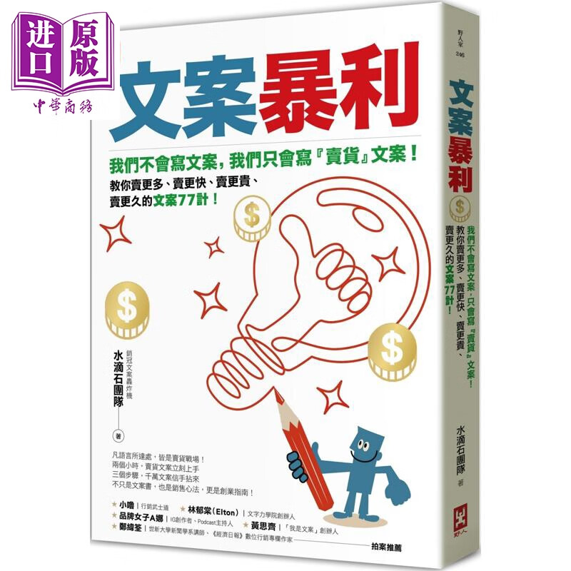 预售 文案暴利 港台原版 水滴石团队 野人文化