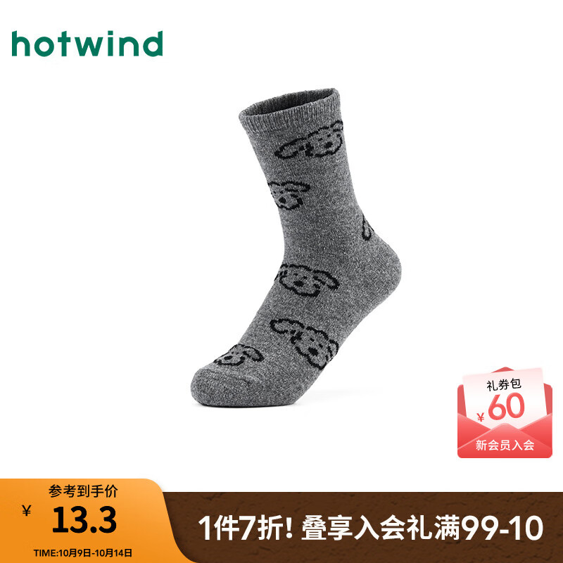 热风(Hotwind)【商场同款】女袜子加厚中帮袜2025年冬季新款可爱小狗提花中帮袜 09灰色 1双 均码