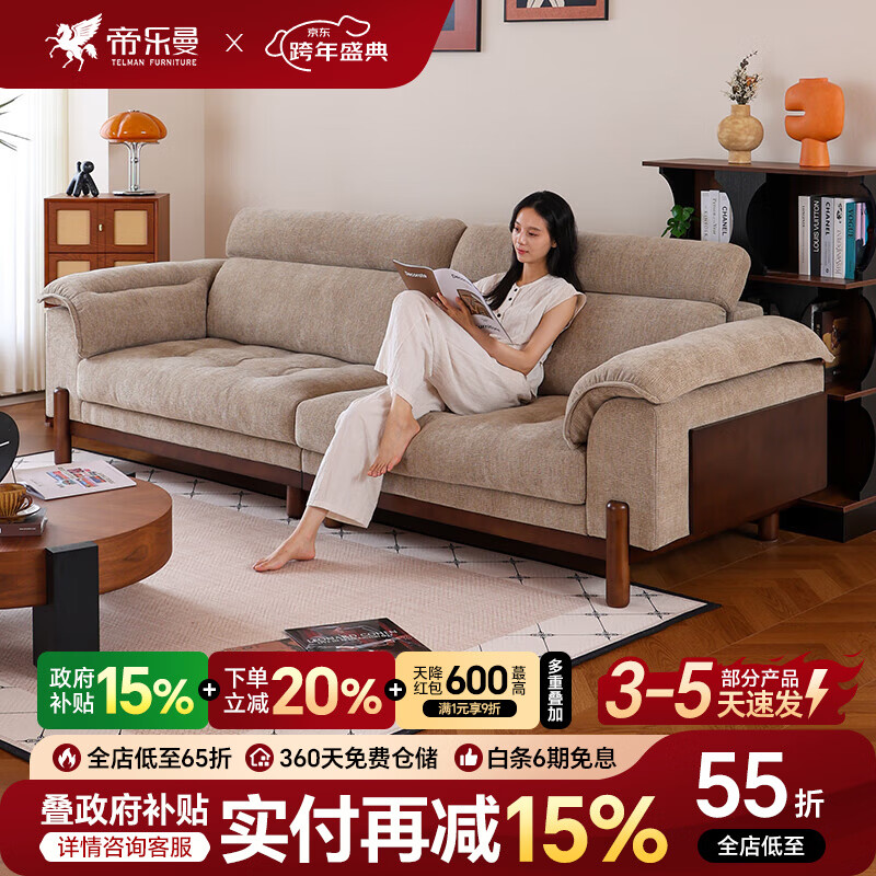 帝乐曼现代简约雪尼尔布艺沙发可拆洗客厅中古风小户型直排布艺棉麻沙发 3.3米直排【框架质保终身-可拆洗设计】 【顶配版】S级透气棉麻+白鹅绒+水洗乳胶+高回弹海绵