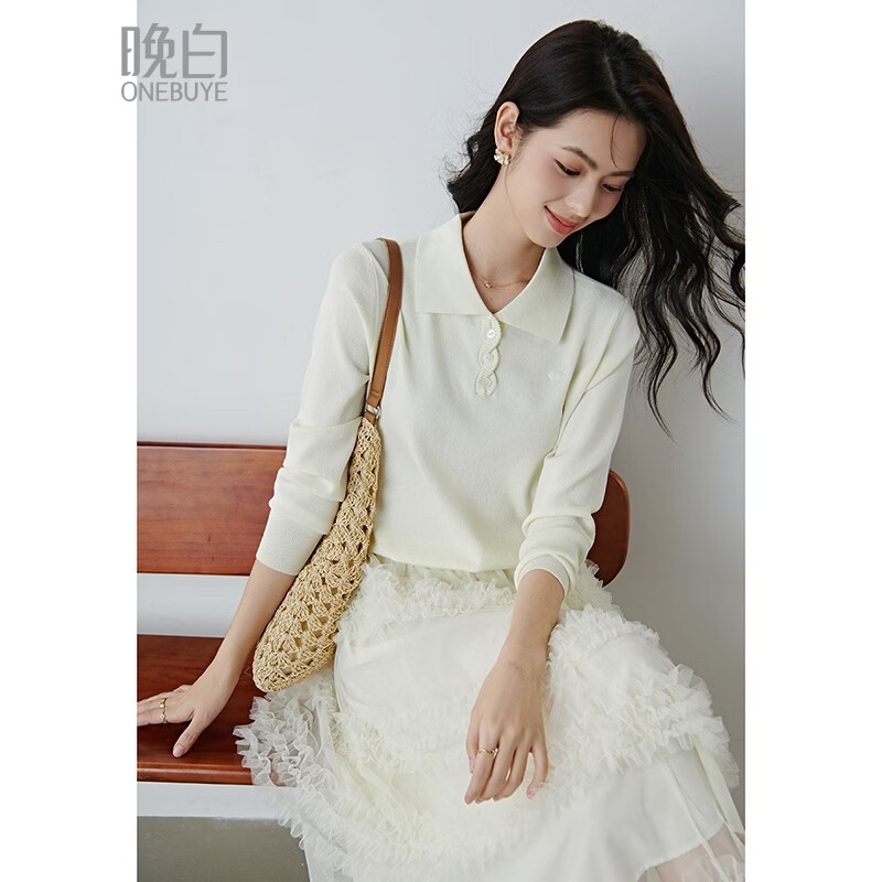晚白2026年春款温柔奶油系淡人高知穿搭麻花翻领上衣亲肤减龄针织衫女 米杏色 M