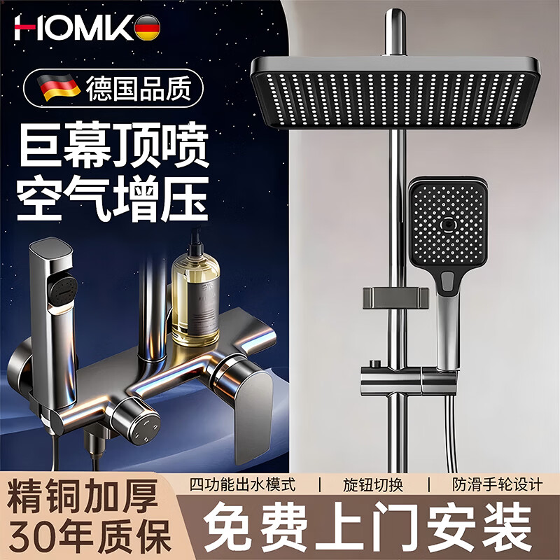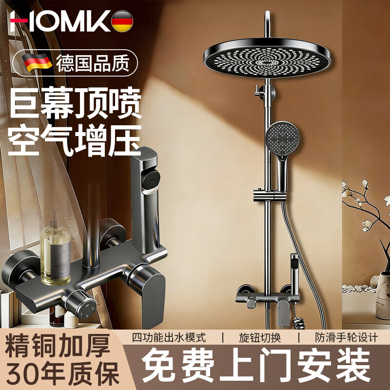 HOMK【德国】包安装淋浴花洒套装一体式全铜洗澡卫浴室洗澡增压全套 【免费上门安装】精铜四功能套装-枪灰 德国工艺丨防爆防漏丨生锈包赔