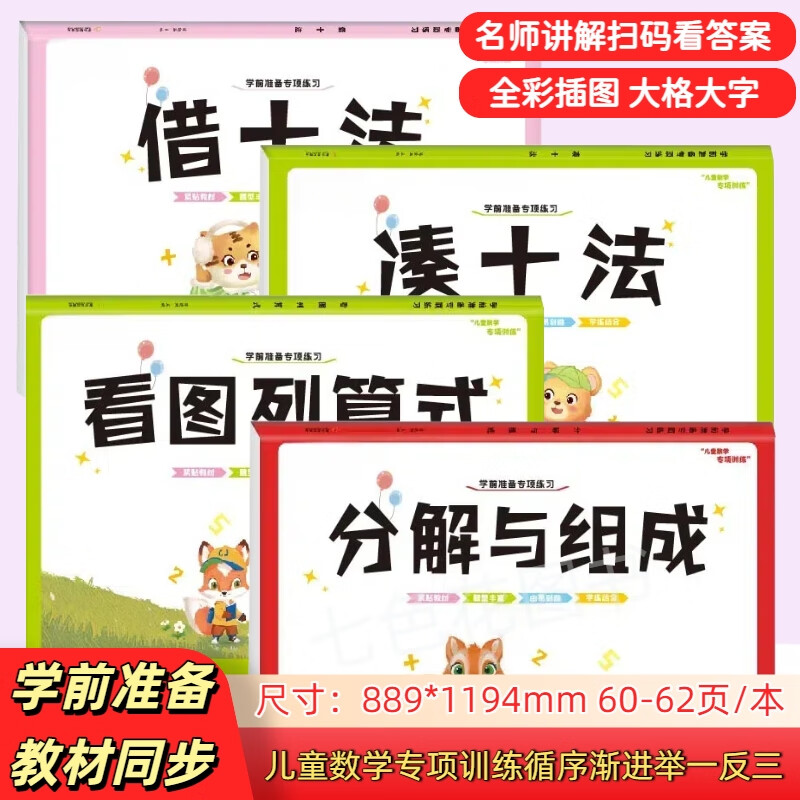升级版幼小衔接借十法凑十法数学专项启蒙加减法练习册一年级看图列算式 【升级版彩图大开本】借+凑+分解+看图列算 共4本