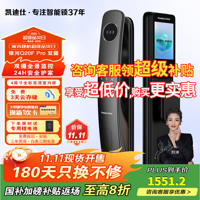 凯迪仕(KAADAS)全自动智能门锁指纹锁电子锁家用防盗门密码锁Q20F Pro双摄 Q20F Pro双摄