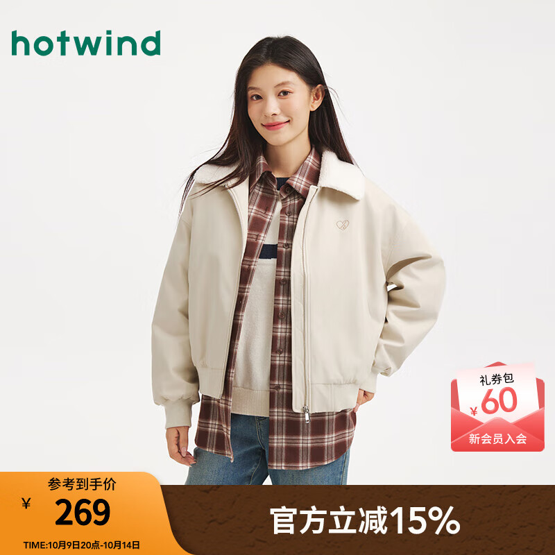 热风(Hotwind)女士夹克外套上衣2025年冬季新款翻毛领短夹克复古工装风外套 08杏色 M