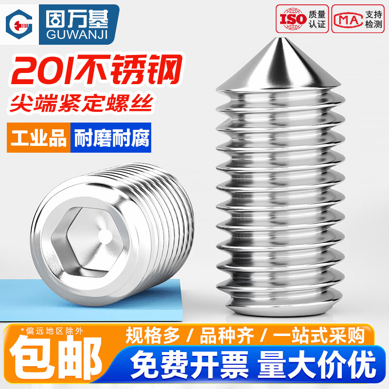固万基(GUWANJI)201不锈钢内六角尖头紧定螺丝钉DIN914机米螺钉顶丝M2-M16 M3x3[500粒]