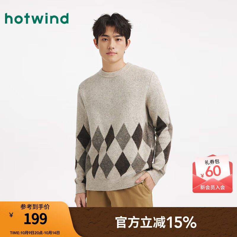 热风(Hotwind)男士圆领毛衣2025年冬季新款时尚撞色针织衫百搭内搭打底衫 125杏灰 M