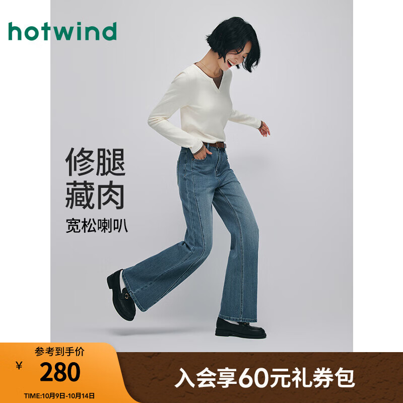 热风【商场同款】女士微喇牛仔裤25年秋新款复古修身显瘦喇叭牛仔长裤 06兰色 28