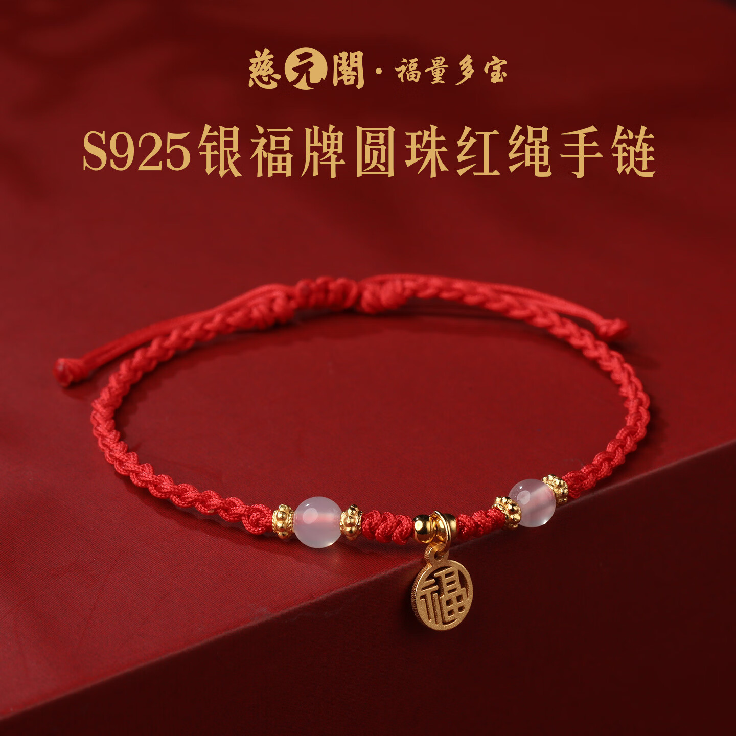 慈元阁s925银福牌圆珠红绳手链本命年女情侣款白玉髓手绳送女友生日礼物 s925银福牌圆珠红绳手链