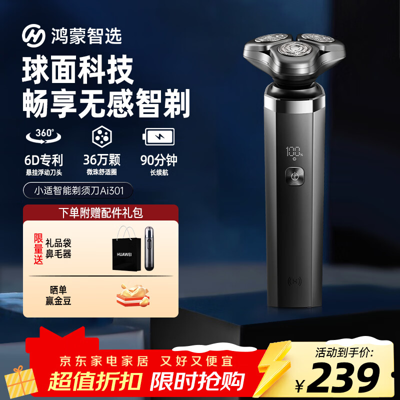 鸿蒙智选智能电动剃须刀男士刮胡刀3系亲肤贴合胡须刀送男友老公新年过年礼物生日情人节礼物 【无感智剃】Ai301(送鼻毛剪+充电头)