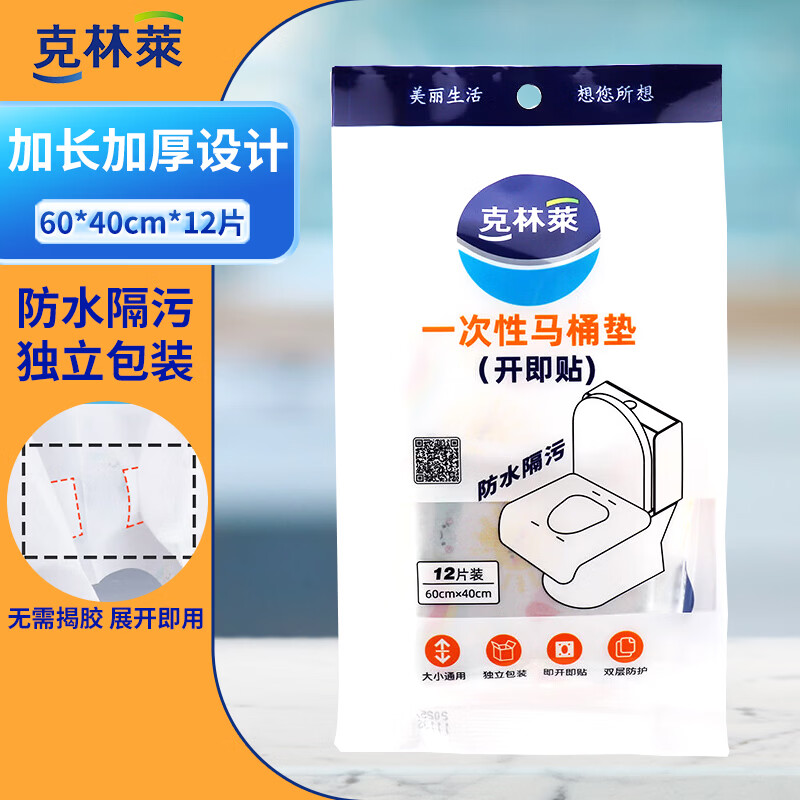 克林莱一次性马桶坐垫60*40cm*12片防水防污独立包装旅行便携外出坐垫纸