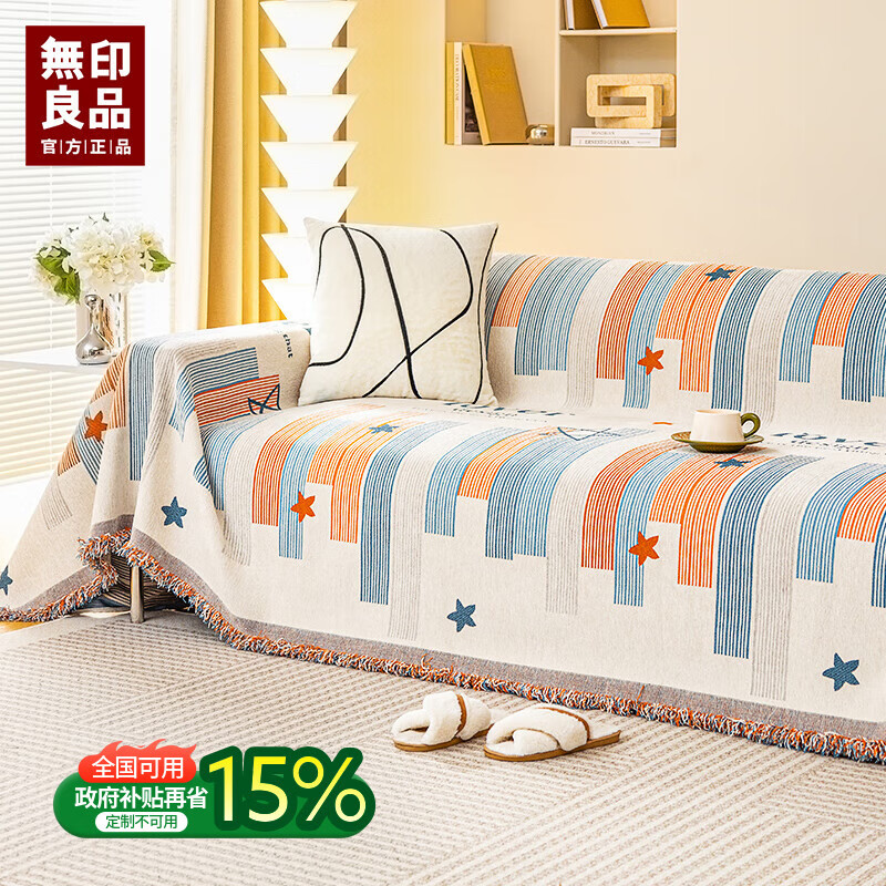 无印良品沙发巾盖布多巴胺雪尼尔ins风四季通用沙发盖布防猫抓沙发巾全盖 双面可用雪尼尔-星梦橙蓝(抗皱耐磨防滑 机洗不缩水) 180X130cm 【适合小单人位】