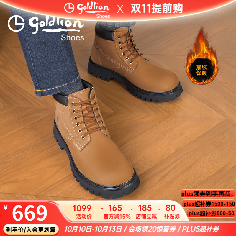 金利来(Goldlion)马丁靴2025年冬季新品男靴加绒保暖工装靴男大黄靴男厚底情侣靴子 土黄 41