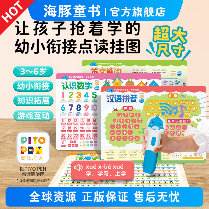 【点读版】豚小蒙点读挂图 英语启蒙幼小衔接启蒙百科国学启蒙 1-3-6岁儿童启蒙早教 支持小鸡球球豚小蒙点读笔 幼小衔接(全4张)