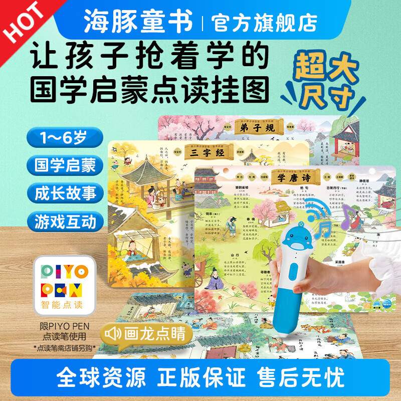 【点读版】豚小蒙点读挂图 英语启蒙幼小衔接启蒙百科国学启蒙 1-3-6岁儿童启蒙早教 支持小鸡球球豚小蒙点读笔 国学启蒙(全4张)